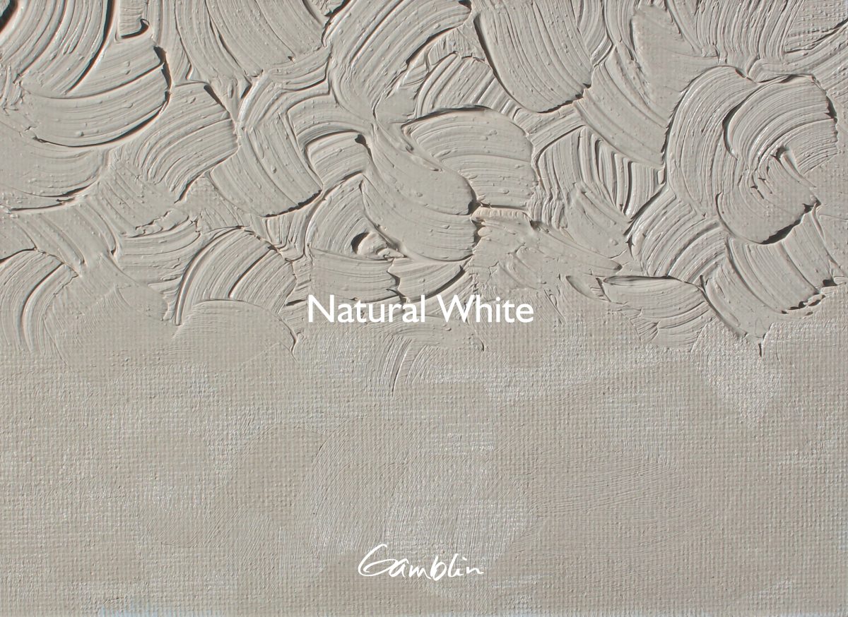 With Natural White, our intention was to create the perfect white for mixing colors of the natural world. A truly useful tool for painting both people and places. Natural White is ideal for mixing the colors of birches, aspens, fields, prairie, and so on. Simply put, Natural White helps your mixtures get where you want them to be. More neutral and muted than the Warm White in our Artist Grade Range. Lighter, warmer, and less saturated than Titanium Buff.